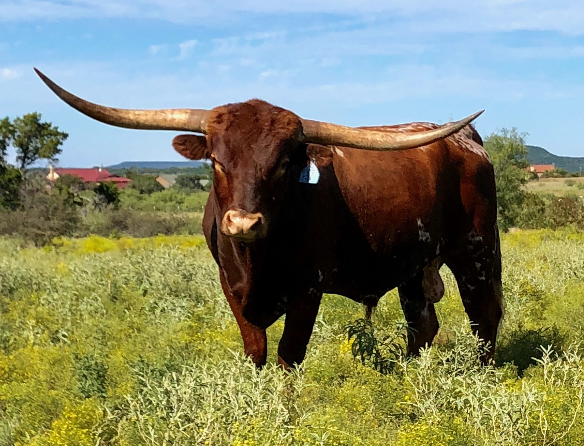 TEJAS TACTICAL was used as a junior herd sire for the 2016 breeding season by RED MCCOMBS RANCHES/ALAN SPARGER and with DOREEN HICKMAN, HICKMAN LONGHORNS. Rise and Shine Ranch as well as Russell Fairchild and his clients have put his genetics to the test in their herds in 2018. DAUNTLESS LONGHORNS has many colorful sons and daughters, we are playing the waiting game. TEJAS TACTICAL calves are magic in the making.